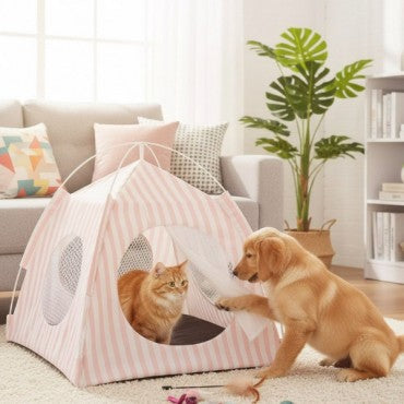 Evcil Hayvan Katlanabilir Oyun Çadırı, kediler ve küçük ırk köpekler için güvenli ve eğlenceli bir yaşam alanı sunar.